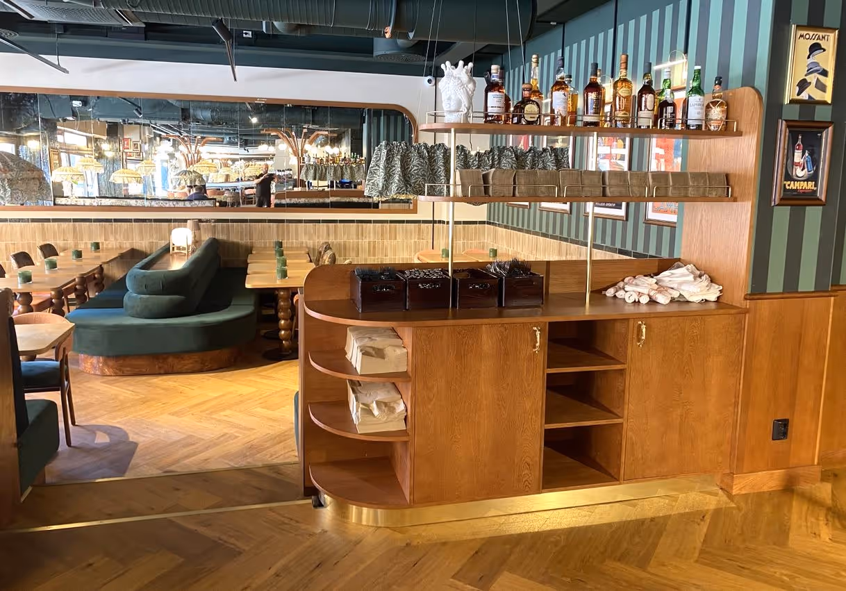 Vi har levererat specialanpassade snickeridetaljer till Café Cappucino Bar & Bistro Kopparmärra i Göteborg. Allt från möbler och golv till dekorativa inslag, med fokus på hög kvalitet och funktion.